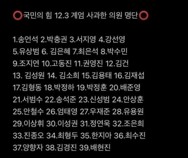 '계엄사과충' 39명 명단.
