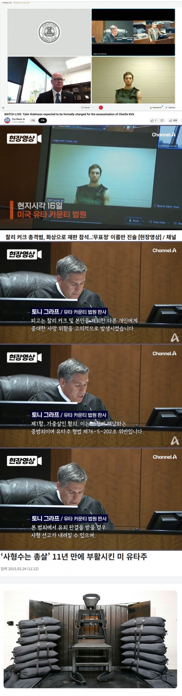 찰리커크 총격범 재판장면. 사형선고 가능성 말하는 판사.