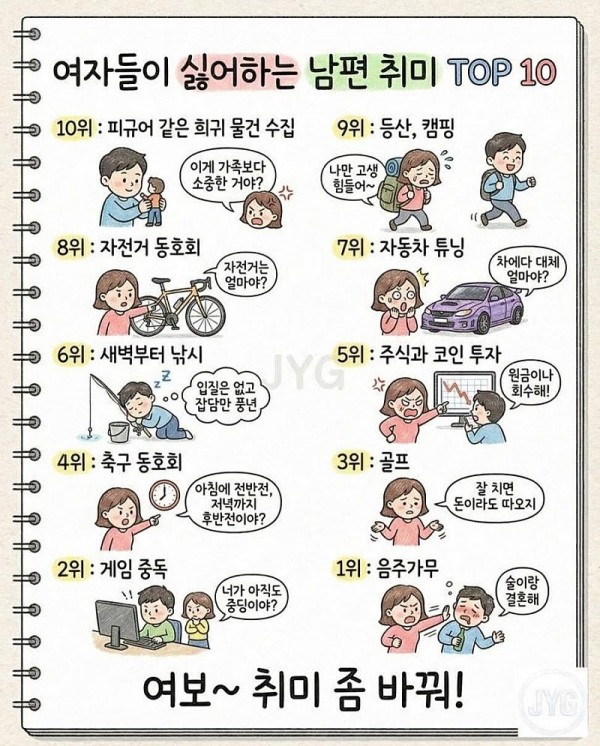 여자들이 싫어하는 남편 취미 TOP10