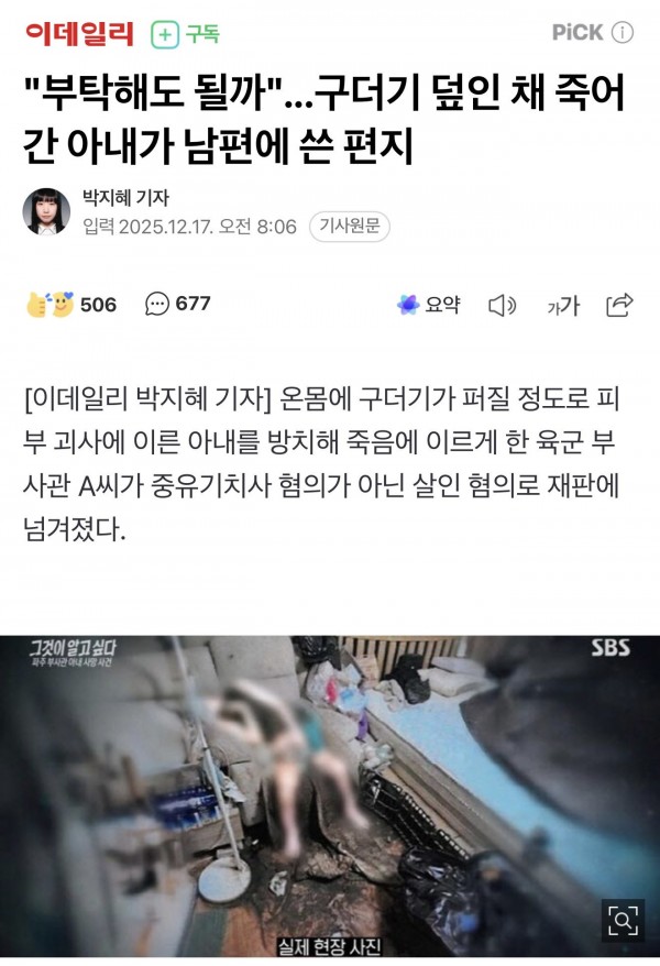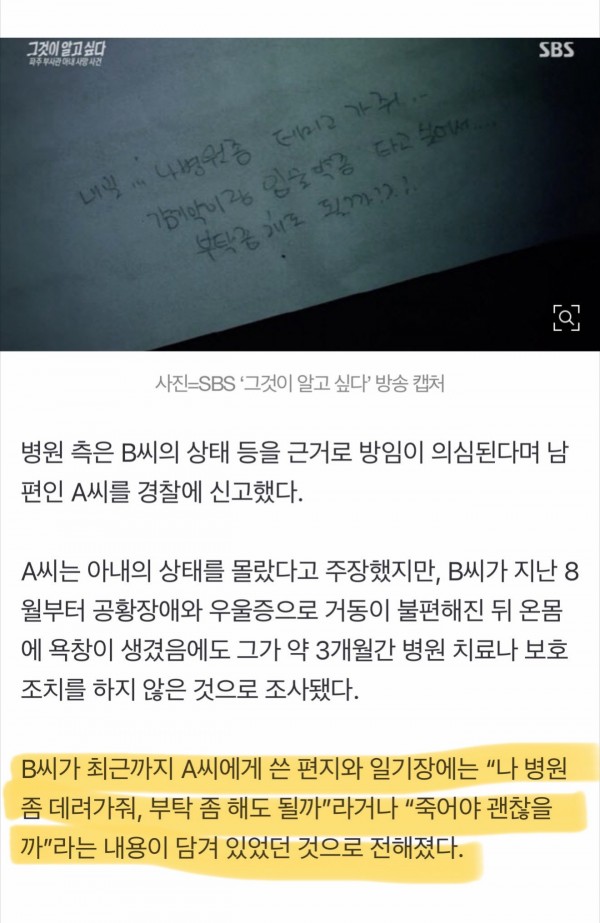 "부탁해도 될까"...구더기 덮인 채 죽어간 아내가 남편에 쓴 편지