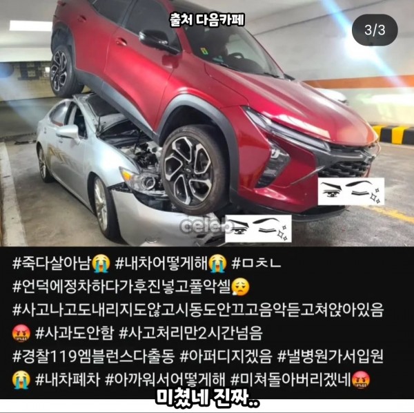 아짐의 지하주차장 레전드 사건 (후진넣고 풀악셀) 페이지 정보 작성자 서기 작성일25-11-24 17:59 댓글0건 관련링크 글복사 목록 본문 진짜 김여사뒤는 따라가지마라... 먼일이 일어날지 모른다 (ㅡ.ㅡ) 추천 0 댓글목록 등록된 댓글이 없습니다. 글복사 목록