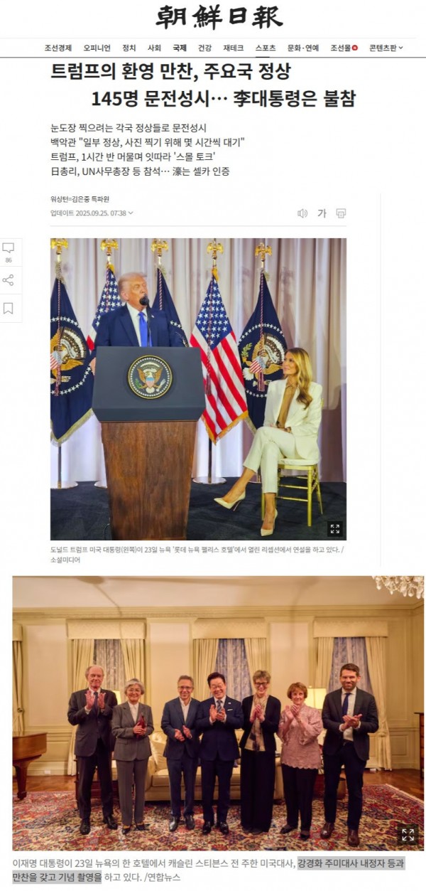 (참사 1) 찢, 145개국 정상 참석한 트럼프 UN환영만찬에 불참하고 호텔에서 강경화 만남